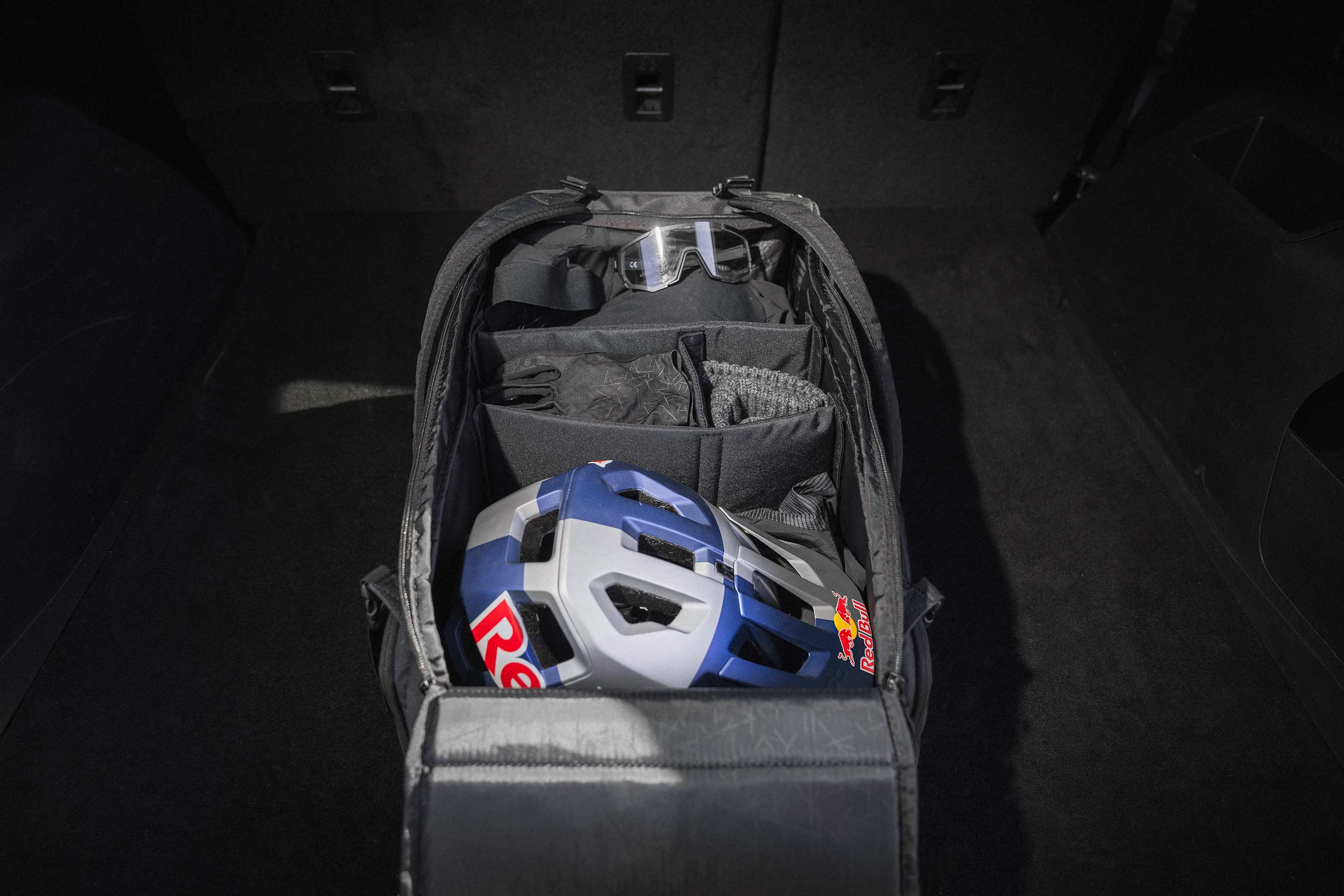 This special edition gear bag combines durability, function, and signature style. With water-repellent fabric, adjustable dividers, and a separate shoe compartment, it keeps your gear clean and organized — from the trail to training camp and back home. Carry it as a backpack and stay ready for whatever your next ride brings.